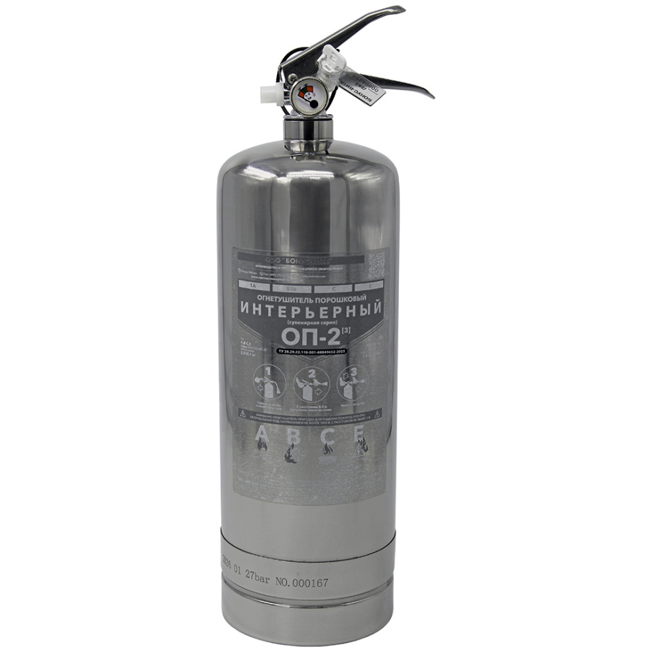 Огнетушитель порошковый ОП-2(з)-ABCE Бонус-Вита нержавеющая сталь интерьерный (сувенирная серия)