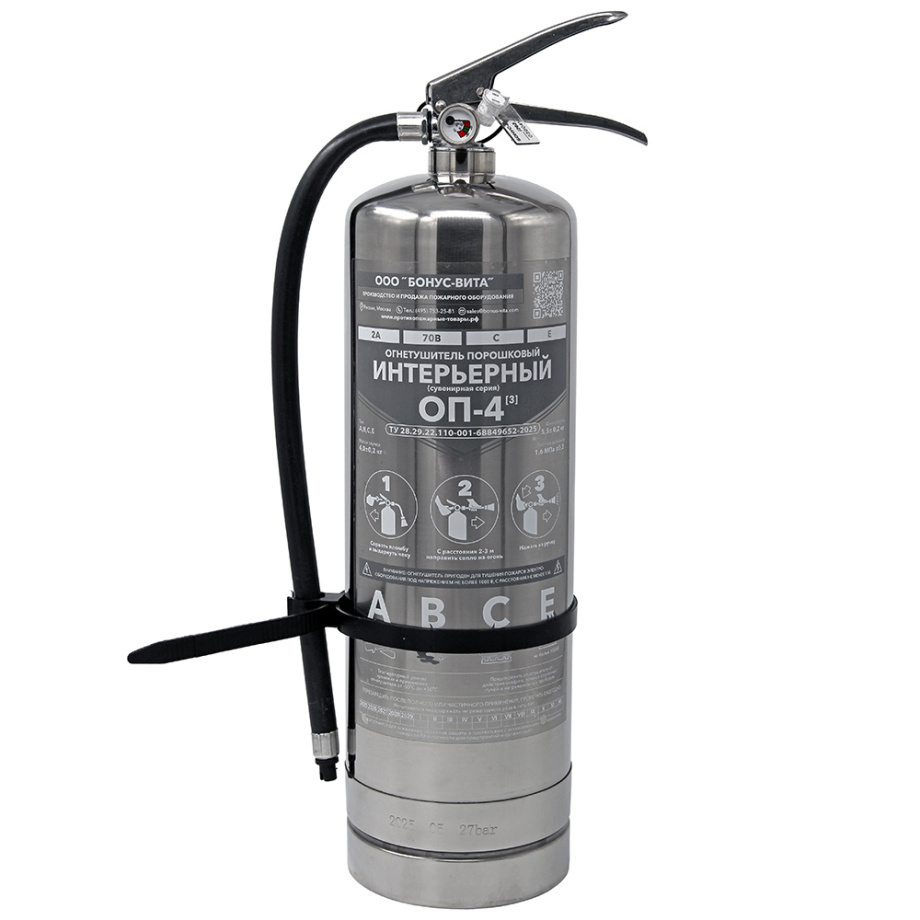 Огнетушитель порошковый ОП-4(з)-ABCE Бонус-Вита нержавеющая сталь интерьерный (сувенирная серия)