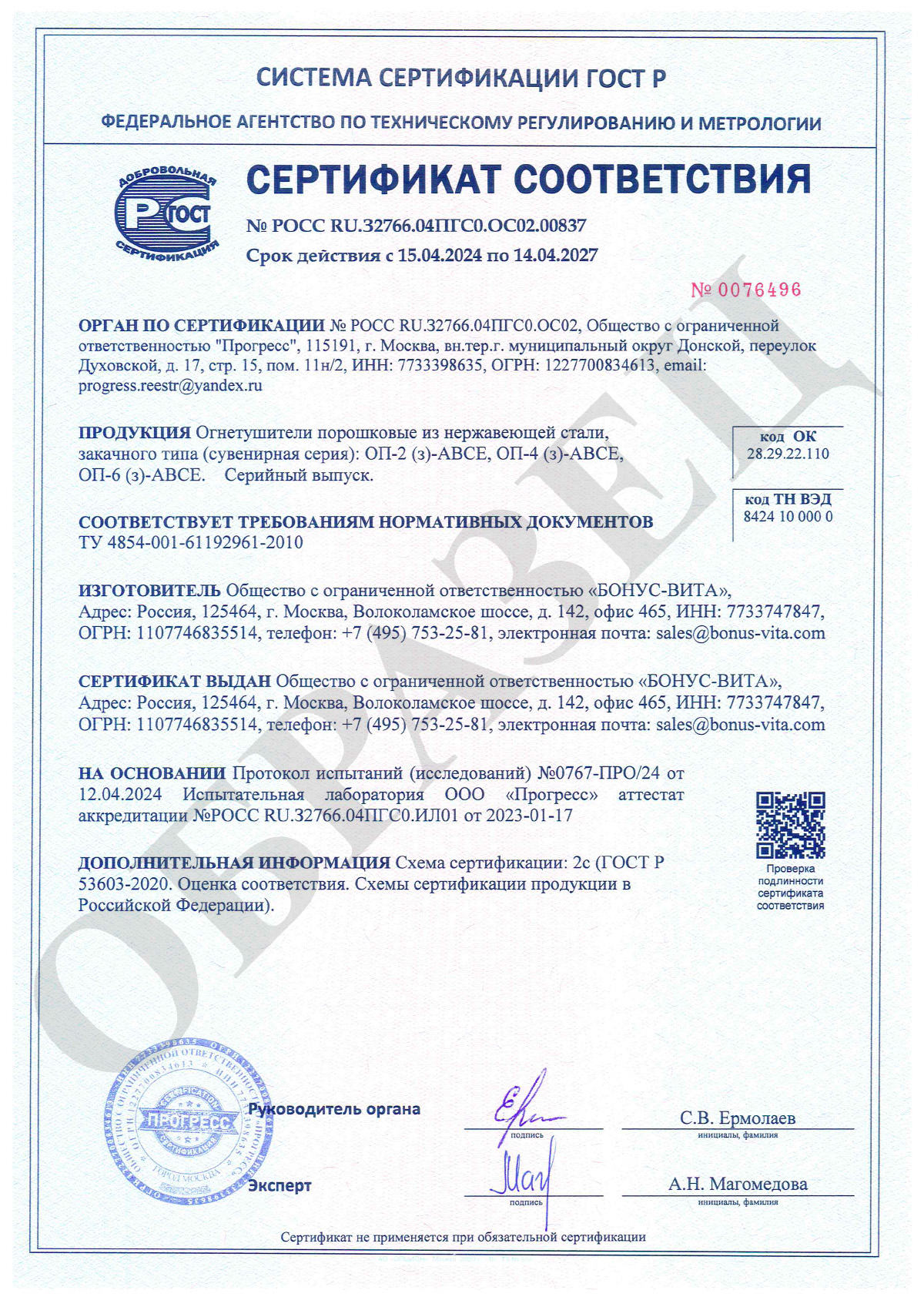 Огнетушитель порошковый ОП-4 Бонус-Вита (г. Москва) - универсальный переносной огнетушитель закачного типа.