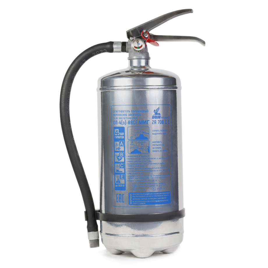 Огнетушитель порошковый из нержавеющей стали ОП-4 МИГ (г. Витебск) - универсальный переносной огнетушитель закачного типа.