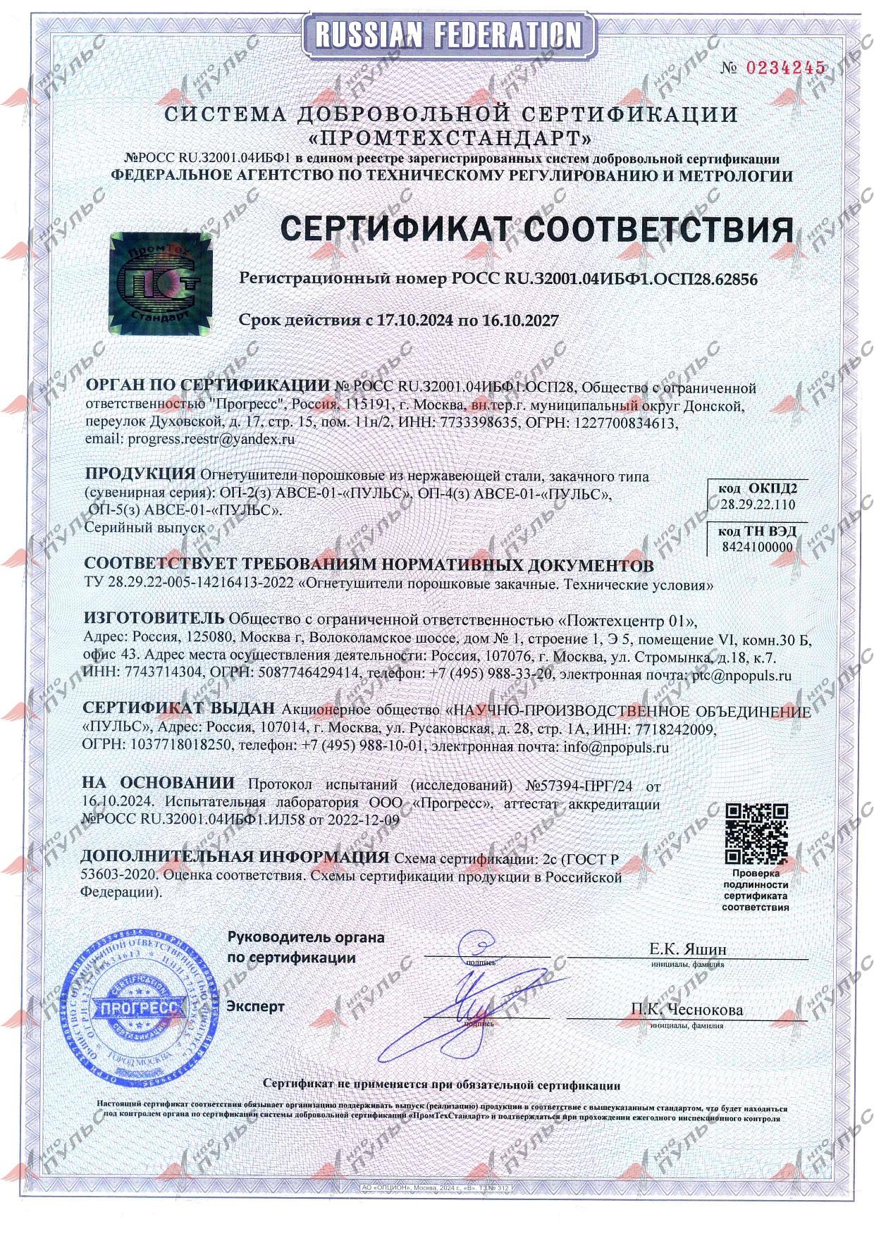 Огнетушитель порошковый ОП-5(з)-АВСЕ-01-«ПУЛЬС» RUBIN - переносной огнетушитель закачного типа.