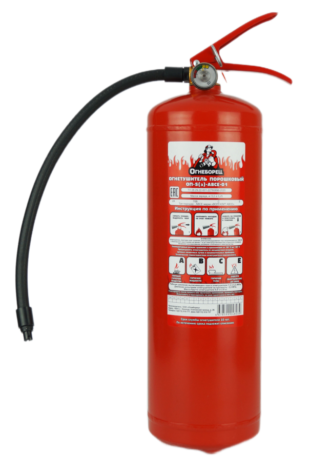 Огнетушитель порошковый ОП-5(з)-ABCE (2А, 70В, С, Е) (ЗПУ латунь) Огнеборец