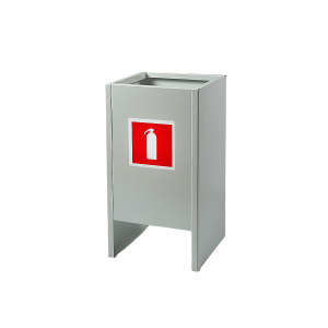 - Подставка для огнетушителя устанавливается на пол опорными поверхностями, внутри подставки размещается огнетушитель.
