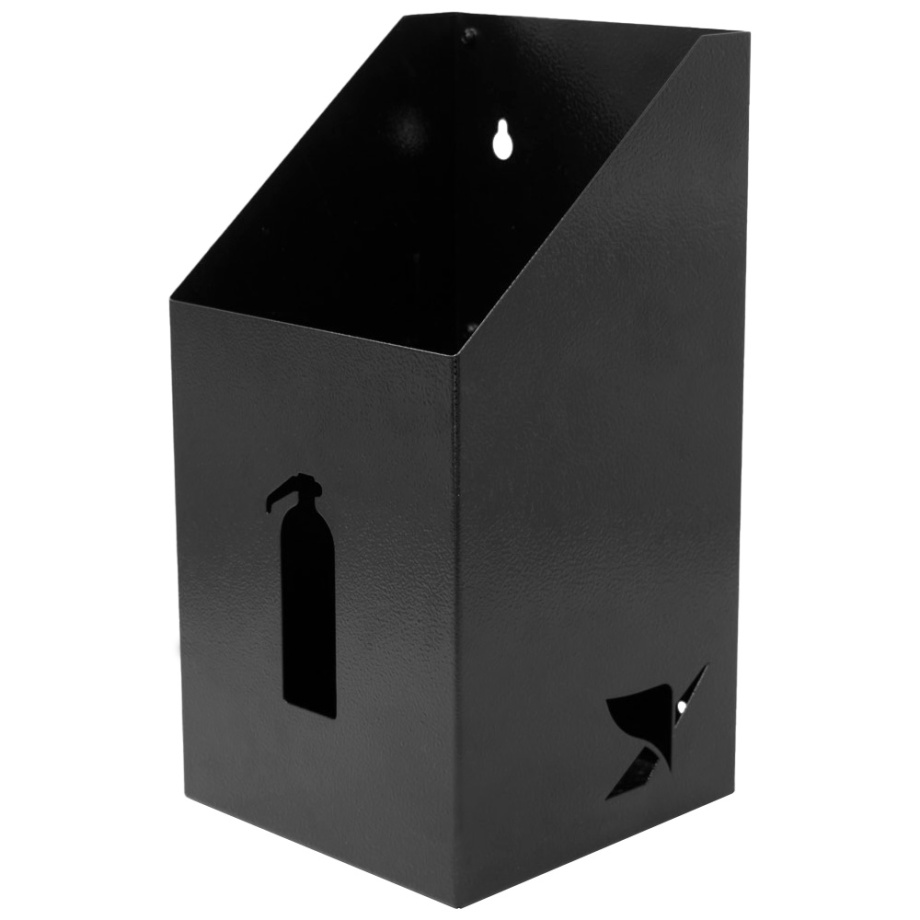 - Подставка для огнетушителя устанавливается на пол опорной поверхностью, внутри подставки размещается огнетушитель.