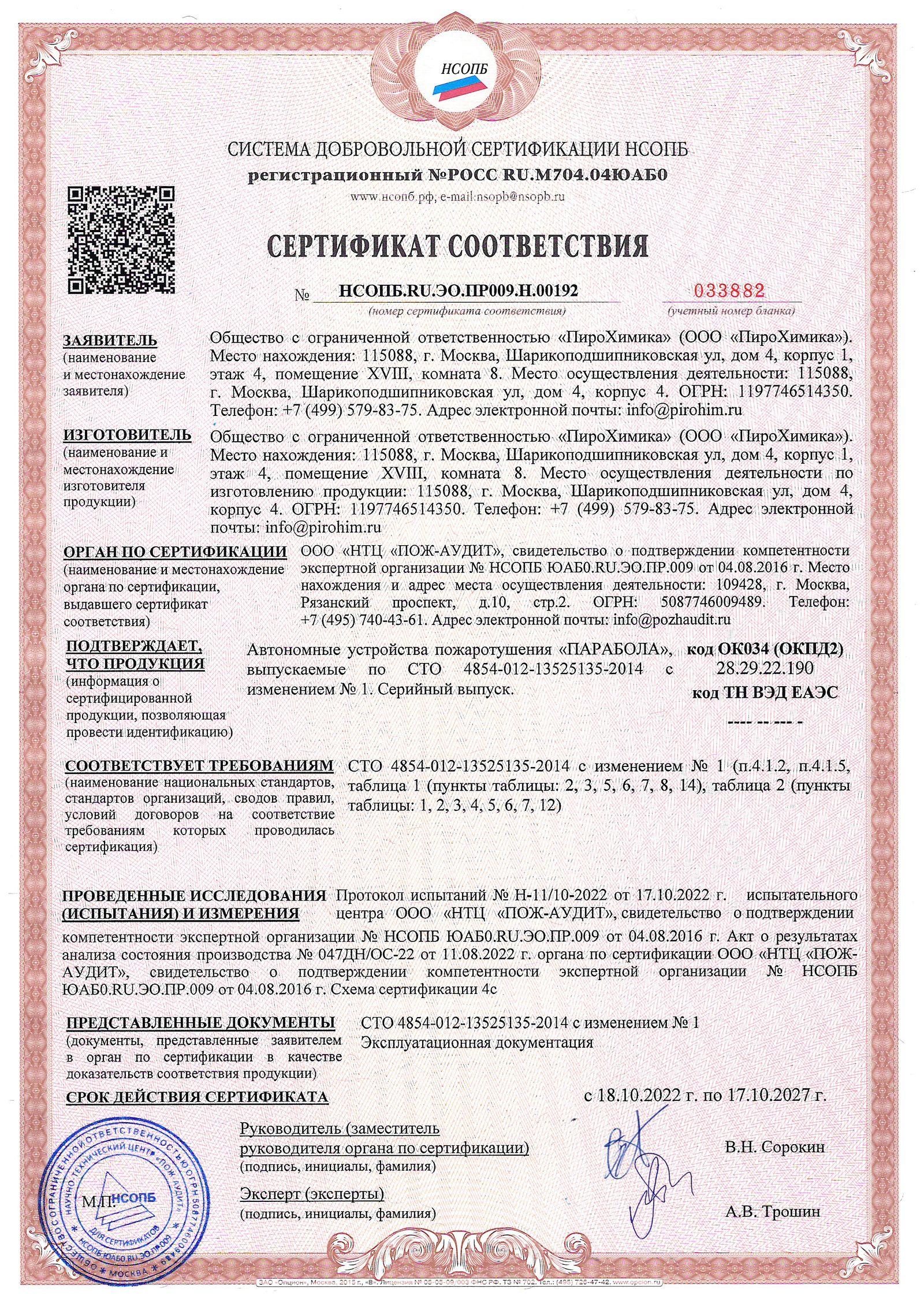 Автономное устройство пожаротушения ПАРАБОЛА-50 предназначено для локализации и тушения пожаров и возгораний классов А (горение твердых веществ), B (горение жидких веществ), а также пожаров и возгораний в электрооборудовании, находящемся под напряжением (класс E).