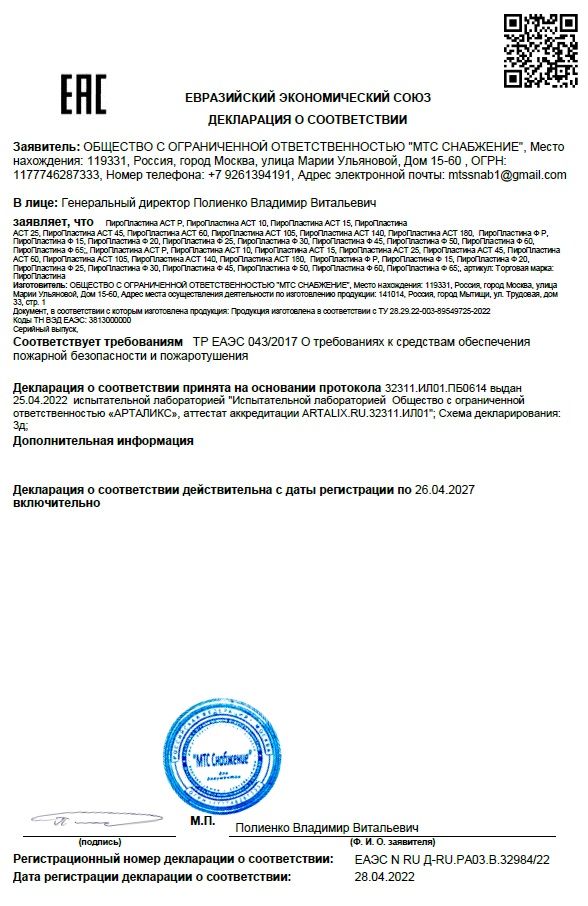 ПироПластина Ф-Р автономное устройство пожаротушения