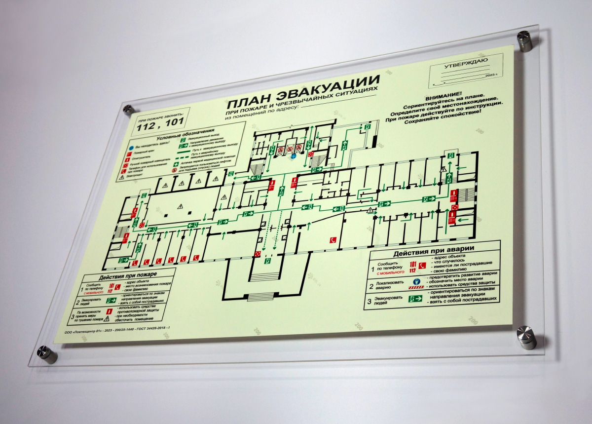 ● Возможно изготовление планов на оргстекле с дистанционными держателями. В этом случае печать производится на фотолюминесцентной плёнке, которая накатывается на оргстекло.