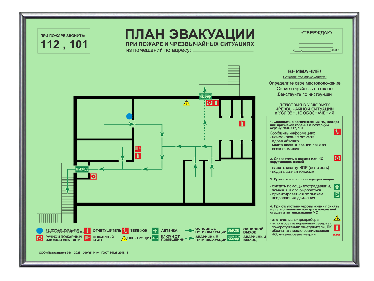 ● Где вешать план эвакуации? – На видном месте: рядом с выходом, в коридоре, холле, фойе и др.