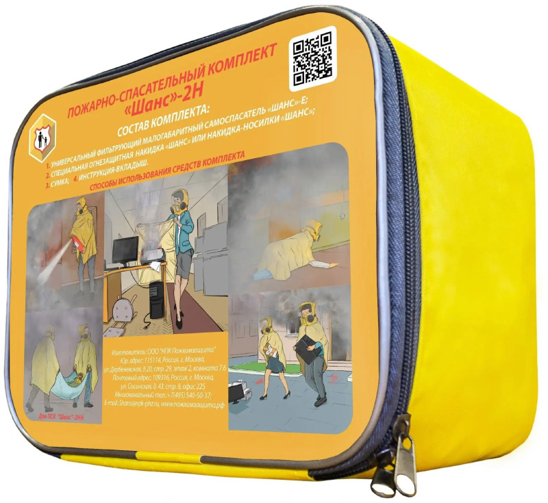 В комплект входят: самоспасатель УФМС ШАНС-Е, специальная огнестойкая накидка ШАНС. Рекомендуется для учреждений и организаций.