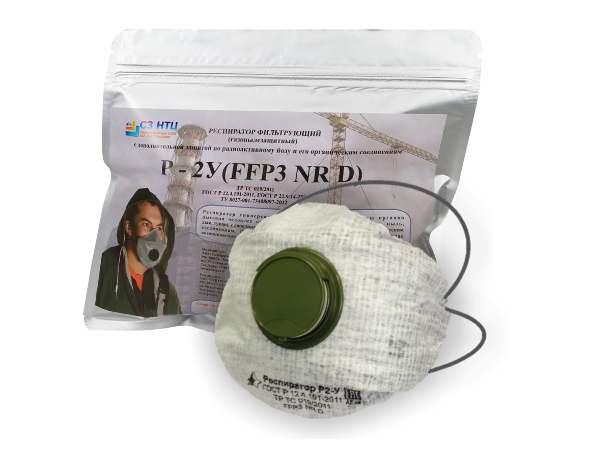 Респиратор Р-2У предназначен для защиты от аэрозолей (пыль, дым, туман), радиоактивных и канцерогенных аэрозолей, а также радиоактивного йода. Предназначен для эвакуации населения из опасной зоны при ЧС. Универсальный размер.