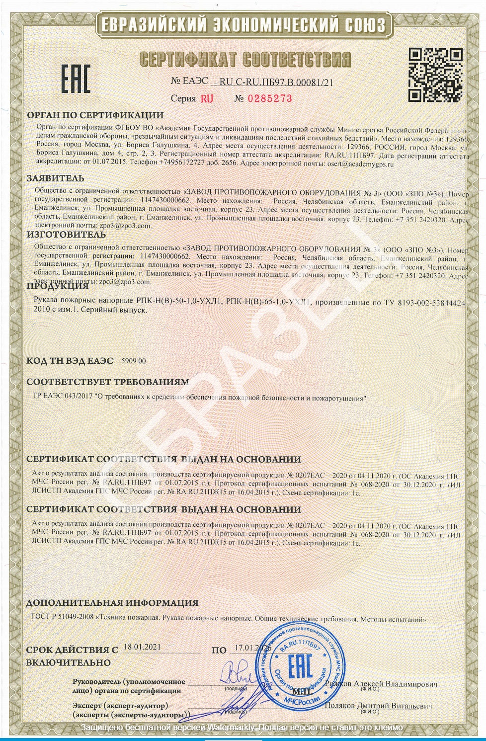 Сертификат №ЕАЭС RU C-RU.ПБ97.В.00134/21