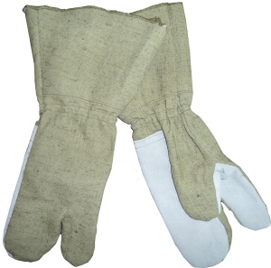 Тыльная сторона и крага выполнены из огнетермостойкого брезента. Подложная часть перчаток выполнена из спилка с водоотталкивающей пропиткой.