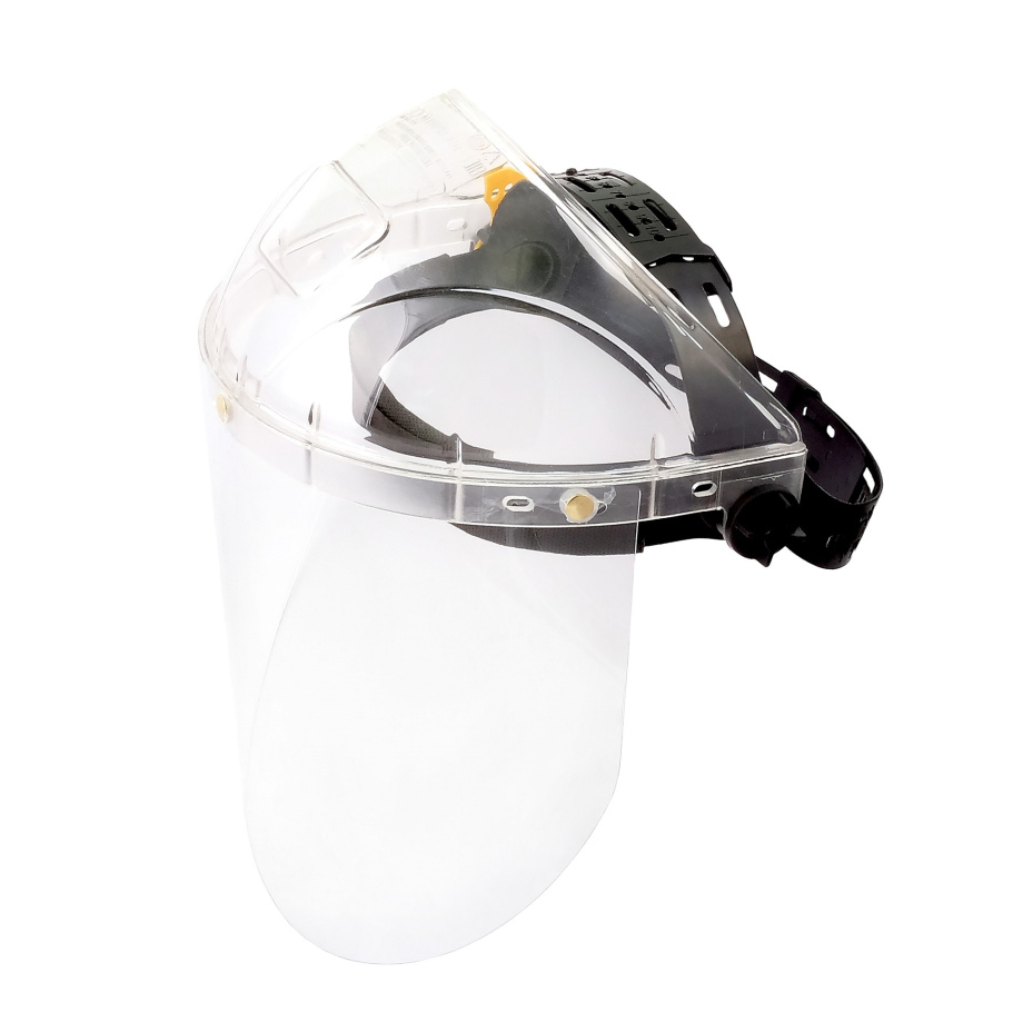 Экран из ударопрочного и термостойкого поликарбоната 2 мм (180х285мм). Наголовное крепление Standart с мягким обтюратором. Оснащен подбородником для дополнительной защиты. Прозрачный козырек из ударопрочного и термостойкого материала STRONG.
