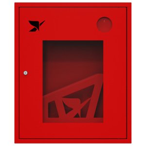 Шкаф комплектуется поворотной корзиной (рукавной кассетой) для одного напорного рукава диаметром от 50 до 66 мм. Снабжен дверцей со смотровым окном с почтовым замком и карманом для хранения ключейи. Окрашен прочным полимерным покрытием красного цвета.