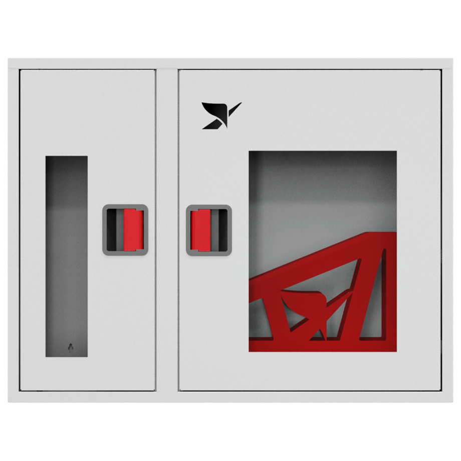 Шкаф пожарный ШП-К-О-Пульс-315 НОБ с евроручками (навесной, открытый, белый) для одного рукава крана противопожарного водопровода и одного огнетушителя.
