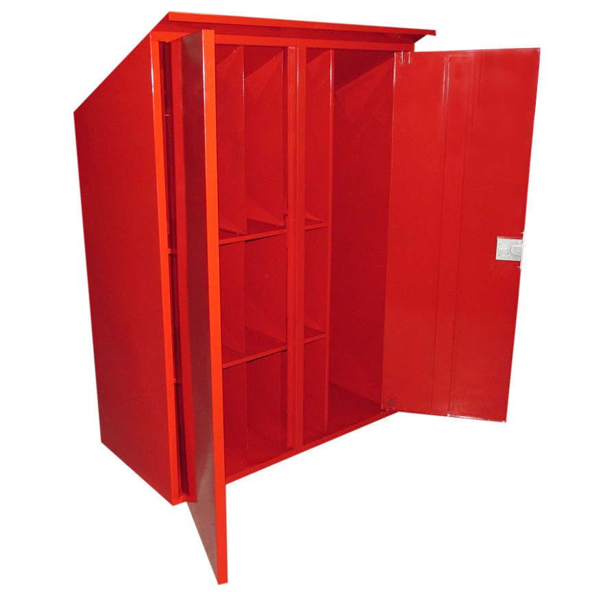 Шкаф для пожарного поста двустворчатый (1000х1350х500 мм). RAL 3002. Предназначен для хранения пожарных принадлежностей (рукавов, пожарного гидранта и т.д.)