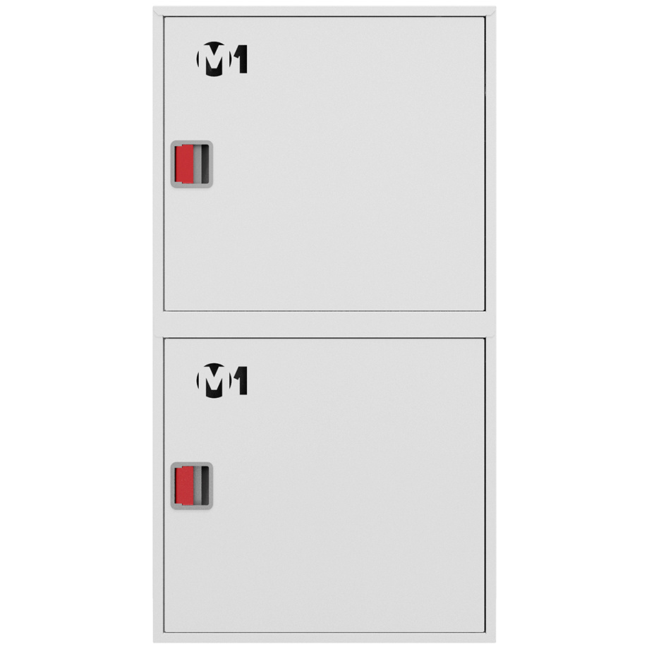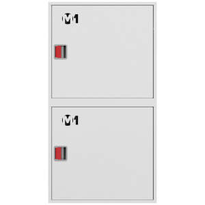 Секции шкафа имеют равные размеры и расположены друг над другом. Верхний отдел комплектуется двумя поворотными корзинами (рукавными кассетами) для двух напорных рукавов диаметром от 50 до 66 мм. Нижнее отделение предназначено для хранения двух огнетушителей.