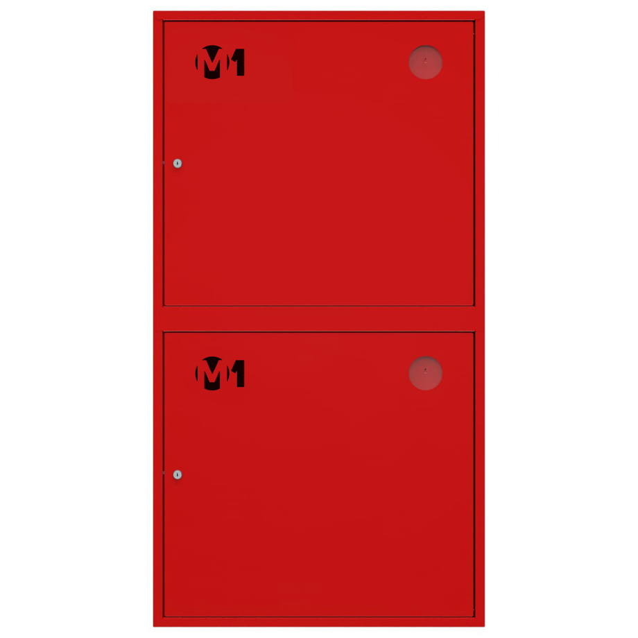 Снабжен глухими дверцами без смотровых окон с почтовыми замками и карманами для хранения ключей. Окрашен полимерным покрытием красного цвета.