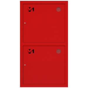 Шкаф пожарный ШП-К-О-003-12 "Т" ВЗК М01 с почтовыми замками (встраиваемый, закрытый, красный) для двух рукавов крана противопожарного водопровода и двух огнетушителей.