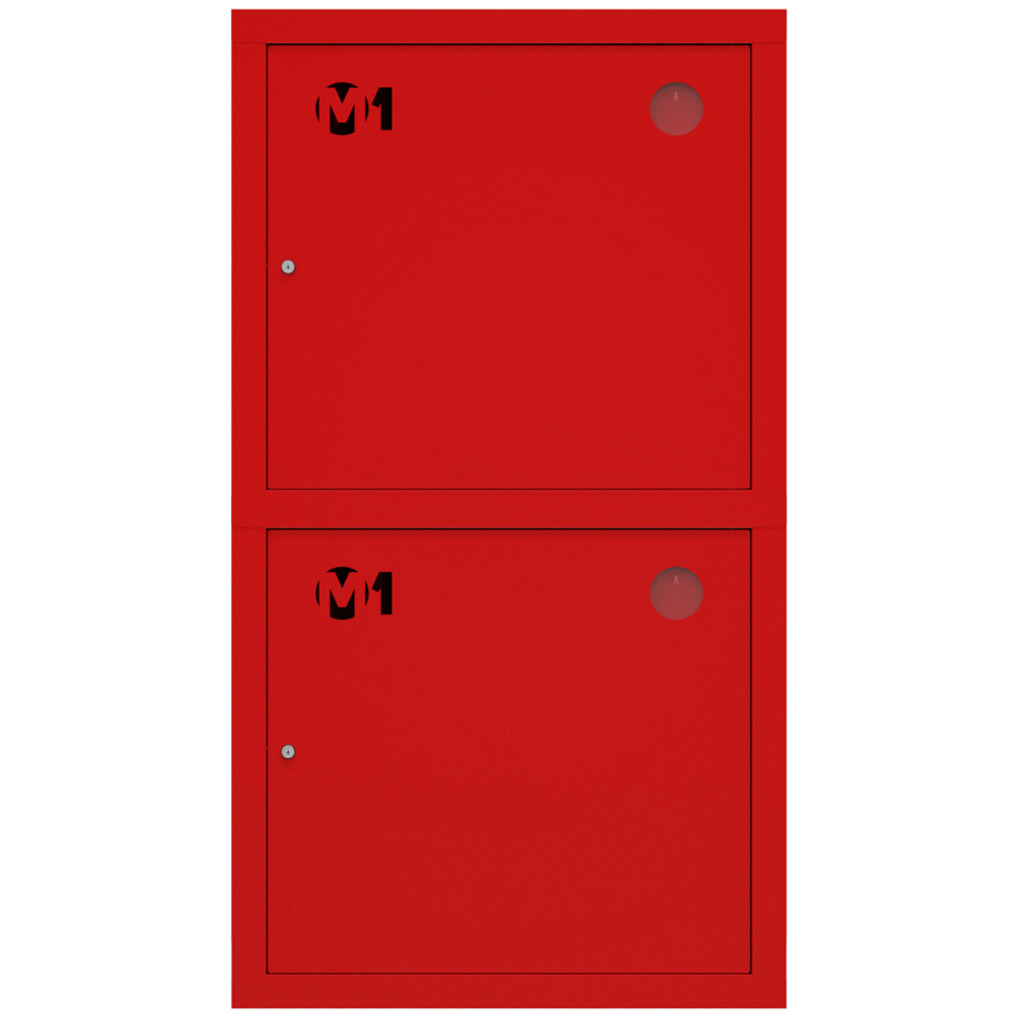 Снабжен глухими дверцами без смотровых окон. Окрашен полимерным покрытием красного цвета.