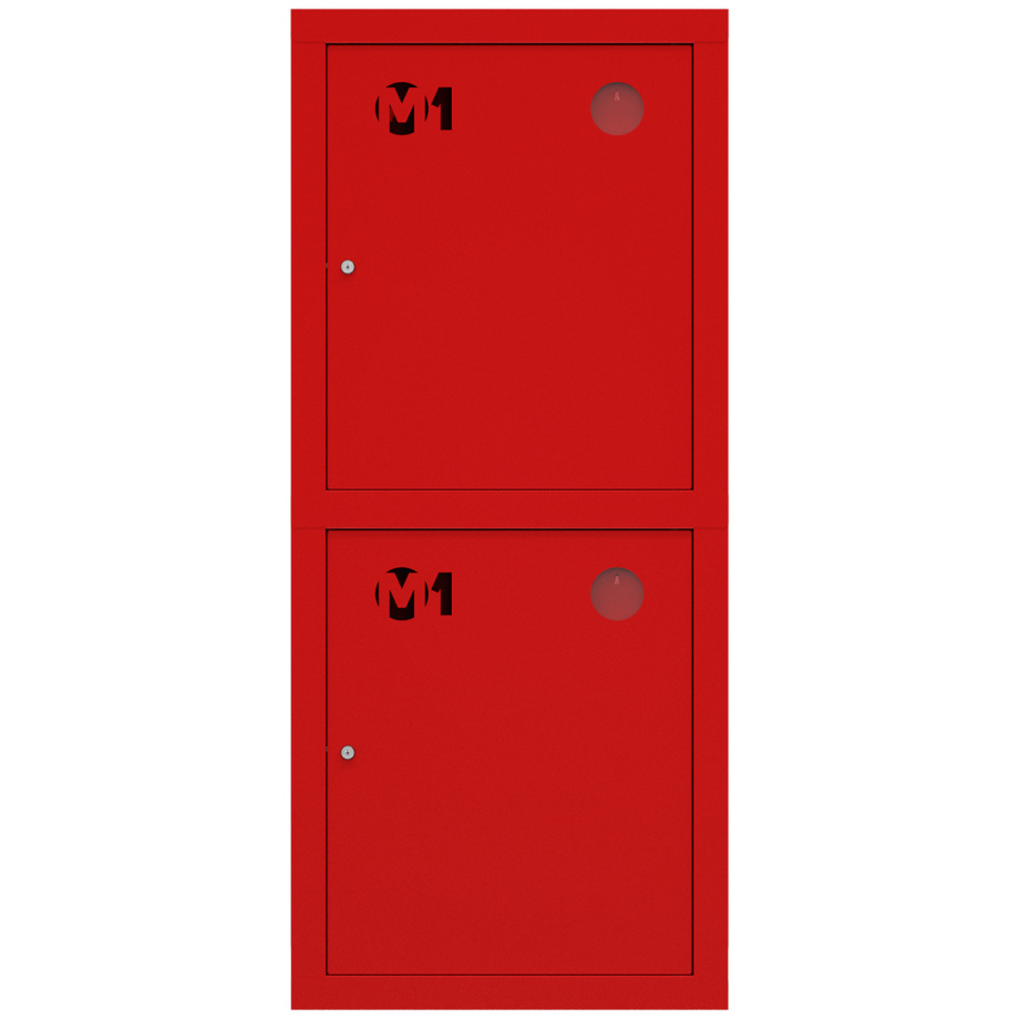 Снабжен дверцами закрытого типа без смотрового окна с почтовыми замками и карманами для хранения ключей. Окрашен прочным полимерным покрытием красного цвета. Толщина металла 0,6 мм.