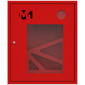 Шкаф комплектуется поворотной корзиной (рукавной кассетой) для одного напорного рукава диаметром от 50 до 66 мм. Снабжен дверцей открытого типа со смотровым окном с почтовым замком и карманом для хранения ключей. Окрашен прочным полимерным покрытием красного цвета. Толщина металла 0,6мм.