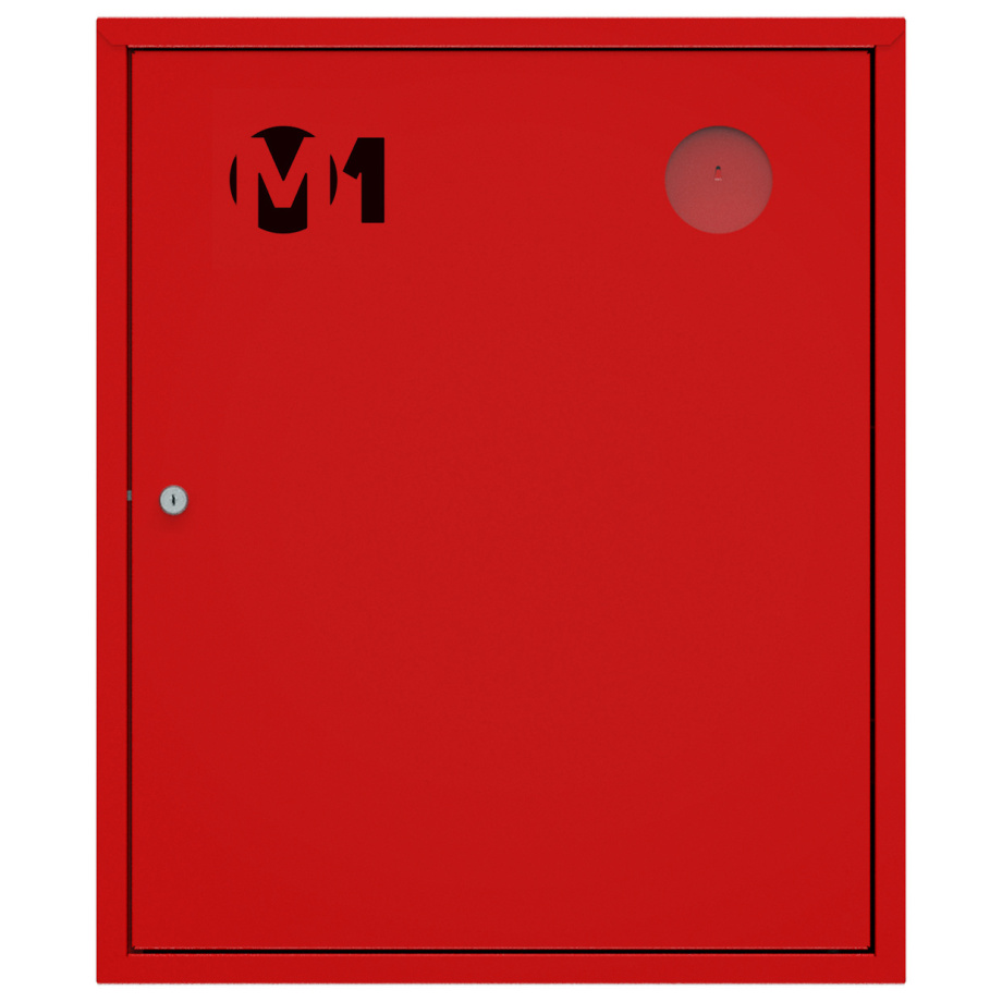 Шкаф комплектуется поворотной корзиной (рукавной кассетой) для одного напорного рукава диаметром от 50 до 66 мм. Снабжен дверцей закрытого типа без смотрового окна с почтовым замком и карманом для хранения ключей. Окрашен прочным полимерным покрытием красного цвета. Толщина металла 0,6 мм.