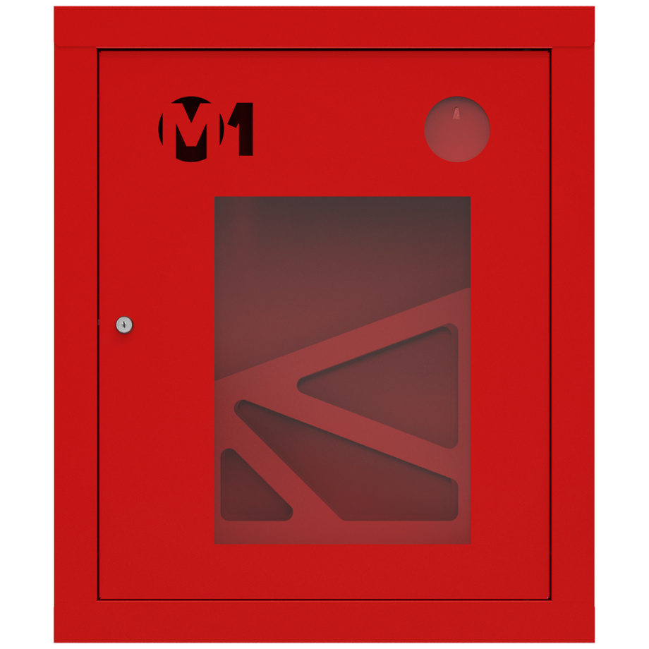 Шкаф комплектуется поворотной корзиной (рукавной кассетой) для одного напорного рукава диаметром от 50 до 66 мм. Снабжен дверцей со без смотровым окном с почтовым замком и карманом для хранения ключей. Окрашен прочным полимерным покрытием красного цвета. Толщина металла 0,6 мм.