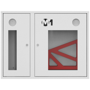 Шкаф комплектуется поворотной корзиной (рукавной кассетой) для одного напорного рукава диаметром от 50 до 66 мм. Снабжен дверцами со смотровым окном с почтовыми замками и карманами для хранения ключей. Окрашен прочным полимерным покрытием белого цвета. Толщина металла 0,6 мм.