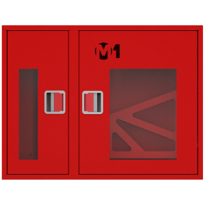 Шкаф комплектуется поворотной корзиной (рукавной кассетой) для одного напорного рукава диаметром от 50 до 66 мм. Снабжен дверцами со смотровым окном с почтовыми замками и карманами для хранения ключей. Окрашен прочным полимерным покрытием красного цвета. Толщина металла 0,6мм.