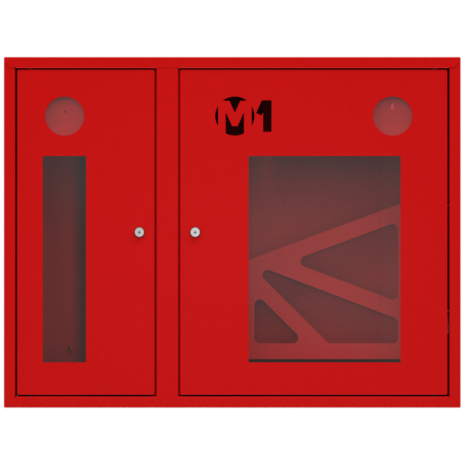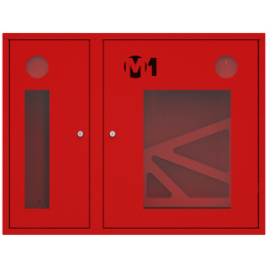 Шкаф комплектуется поворотной корзиной (рукавной кассетой) для одного напорного рукава диаметром от 50 до 66 мм. Снабжен дверцами со смотровым окном с почтовыми замками и карманами для хранения ключей. Окрашен прочным полимерным покрытием красного цвета. Толщина металла 0,6 мм.