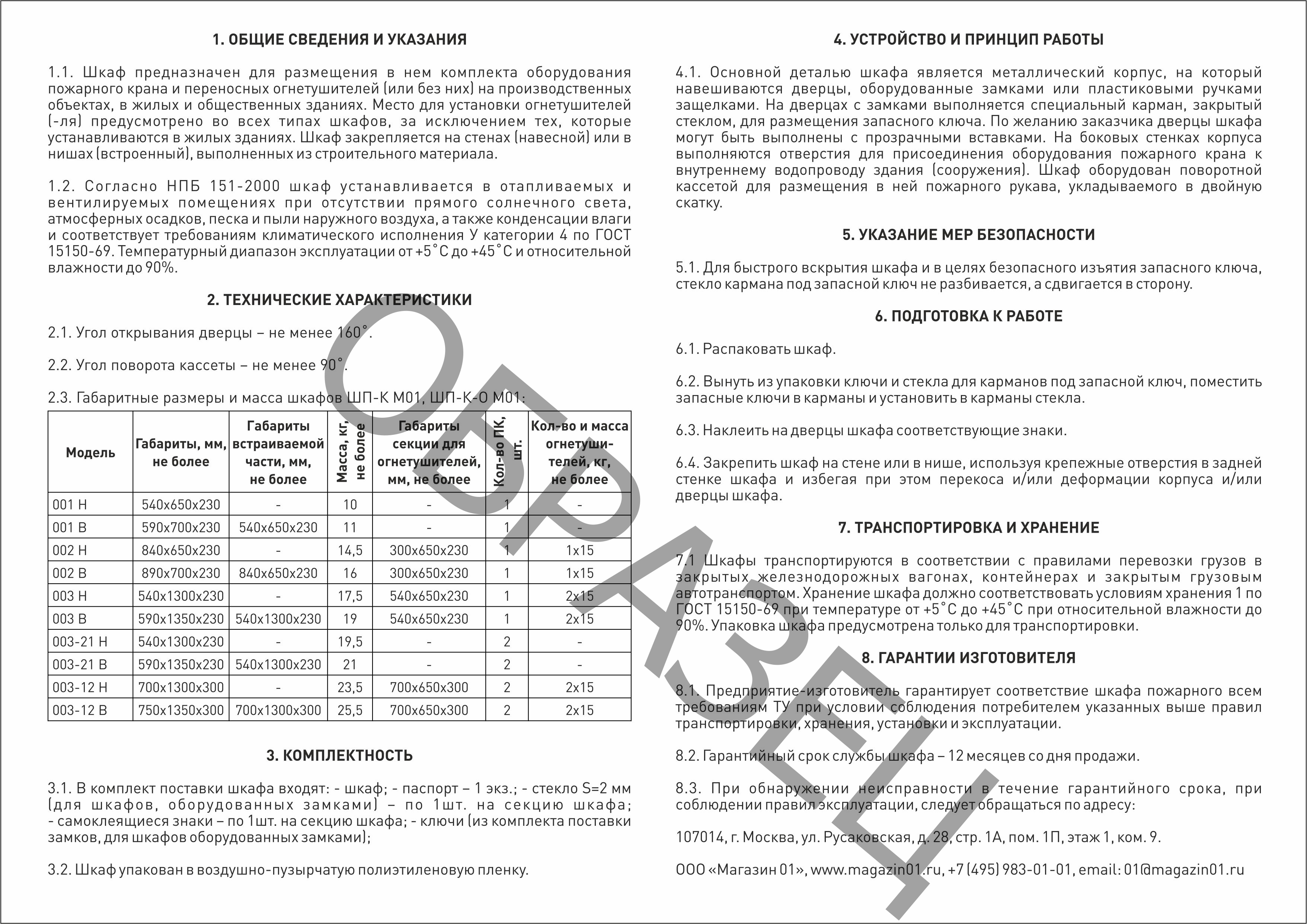 Гарантийный срок службы шкафа - 12 месяцев со дня реализации.