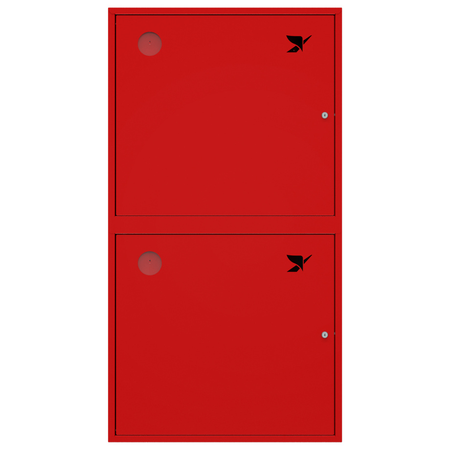 Снабжен глухими дверцами без смотровых окон с почтовыми замками и карманами для хранения ключей . Окрашен прочным полимерным покрытием красного цвета.