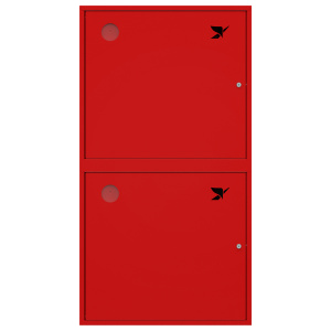 Шкаф пожарный ШПК-О-320-12 «Пульс» НЗК с почтовыми замками (навесной, закрытый, красный) для двух рукавов крана противопожарного водопровода и двух огнетушителей.