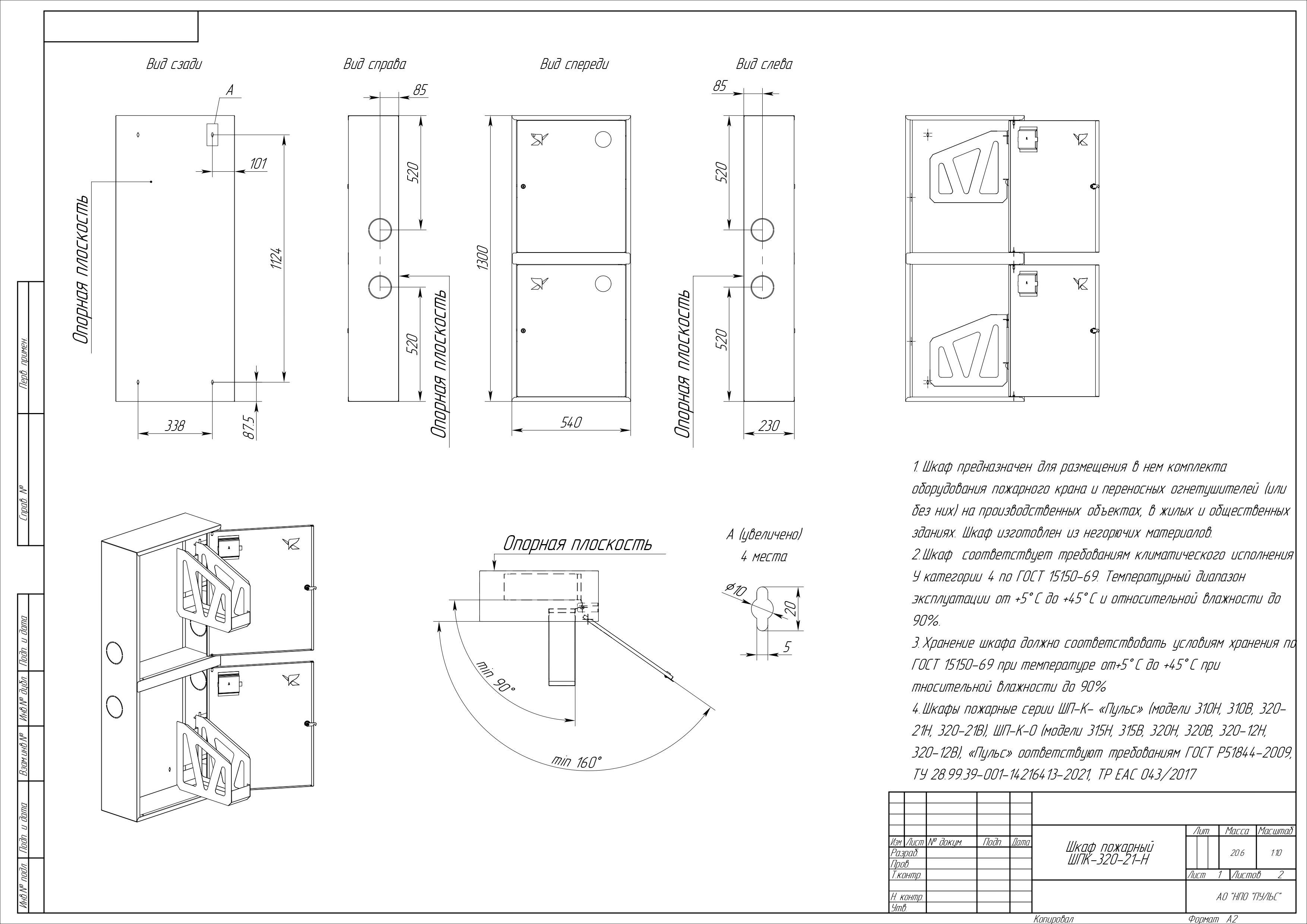 - Оперативная подготовка рукава к пожаротушению за счет широкого угла открывания дверцы более 160° и угла повороты кассеты под пожарный рукав более 90°, в соответствии с требованием ГОСТ.