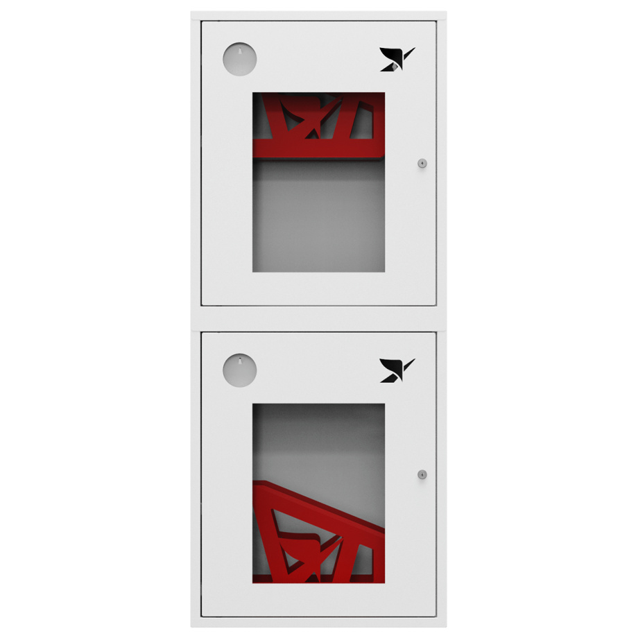 Шкаф пожарный ШП-К-Пульс-320-21 НОБ с почтовыми замками (навесной, открытый, белый) для двух рукавов крана противопожарного водопровода.