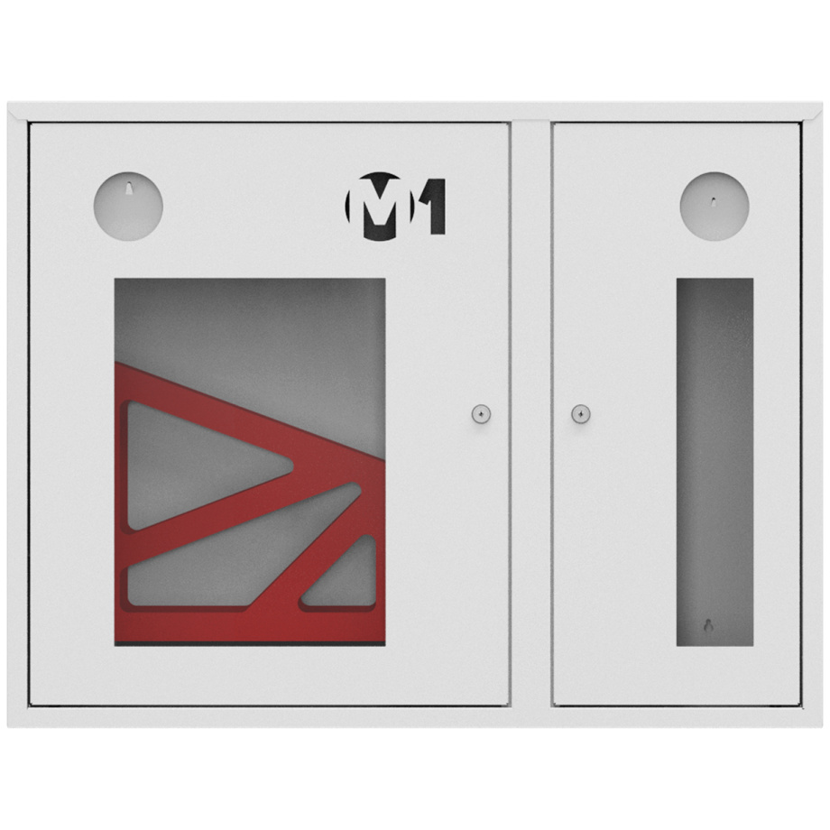 Шкаф пожарный ШП-К-О-002 "Т" НОБ М01 с почтовым замком (навесной, открытый, белый) для одного рукава крана противопожарного водопровода и одного огнетушителя.