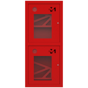 Шкаф пожарный ШП-К-003-21 ВОК М01 с почтовыми замками (встраиваемый, открытый, красный) для двух рукавов крана противопожарного водопровода.