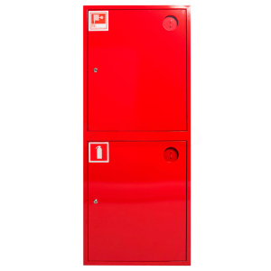 Шкаф пожарный ШП-К-О-320 НЗК (ШПКО-12НЗК) (навесной, закрытый, красный) для одного рукава крана противопожарного водопровода и двух огнетушителей.