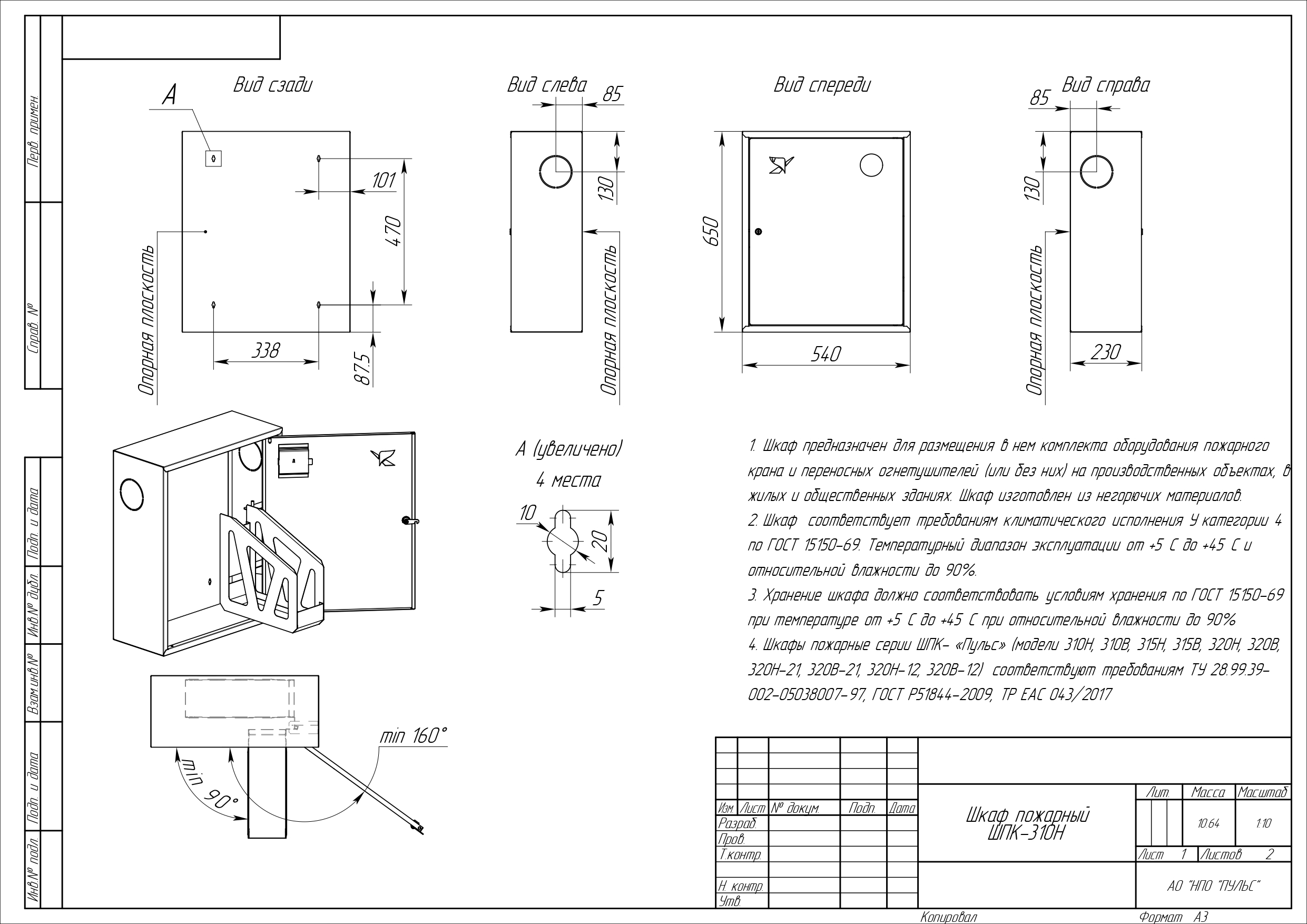 Произведен в соответствии с требованиями ГОСТ Р 51844-2009 (угол открывания дверей, нагрузка на кассету, нагрузка на корпус, быстрота вскрытия, опломбирование, вентиляция и пр.)