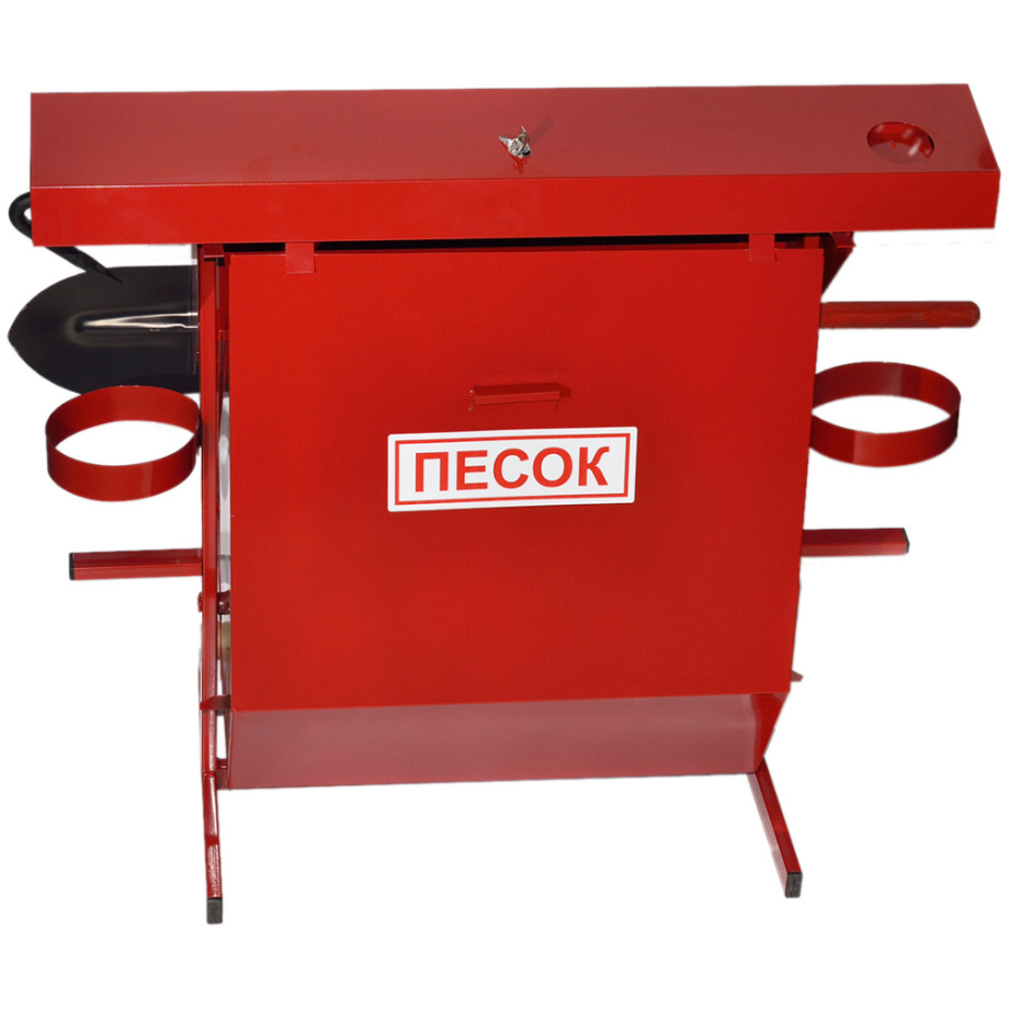 Стенд пожарный предназначен для хранения пожарного инвентаря и оборудования. Размер: 1170х1000х550 мм. В комплект входят: лом, багор, лопата и два конусных ведра.