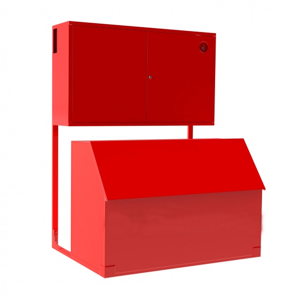 Стенд пожарный «Универсальный» с ящиком для песка 0,5 куб.м дверь глухая (с комплектом)