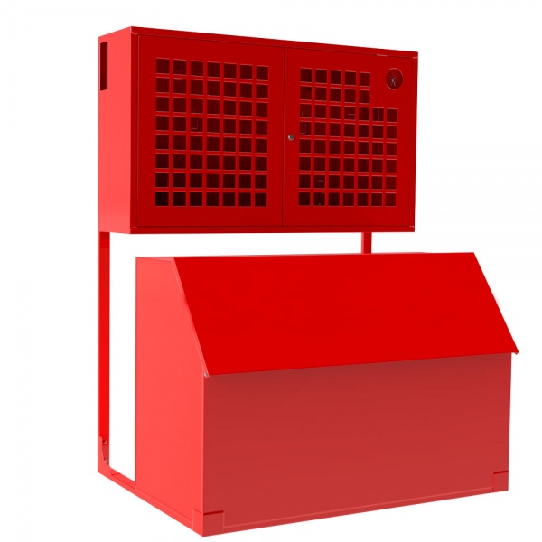 Стенд пожарный «Универсальный» с ящиком для песка 0,5 куб.м дверь с сеткой (без комплекта)