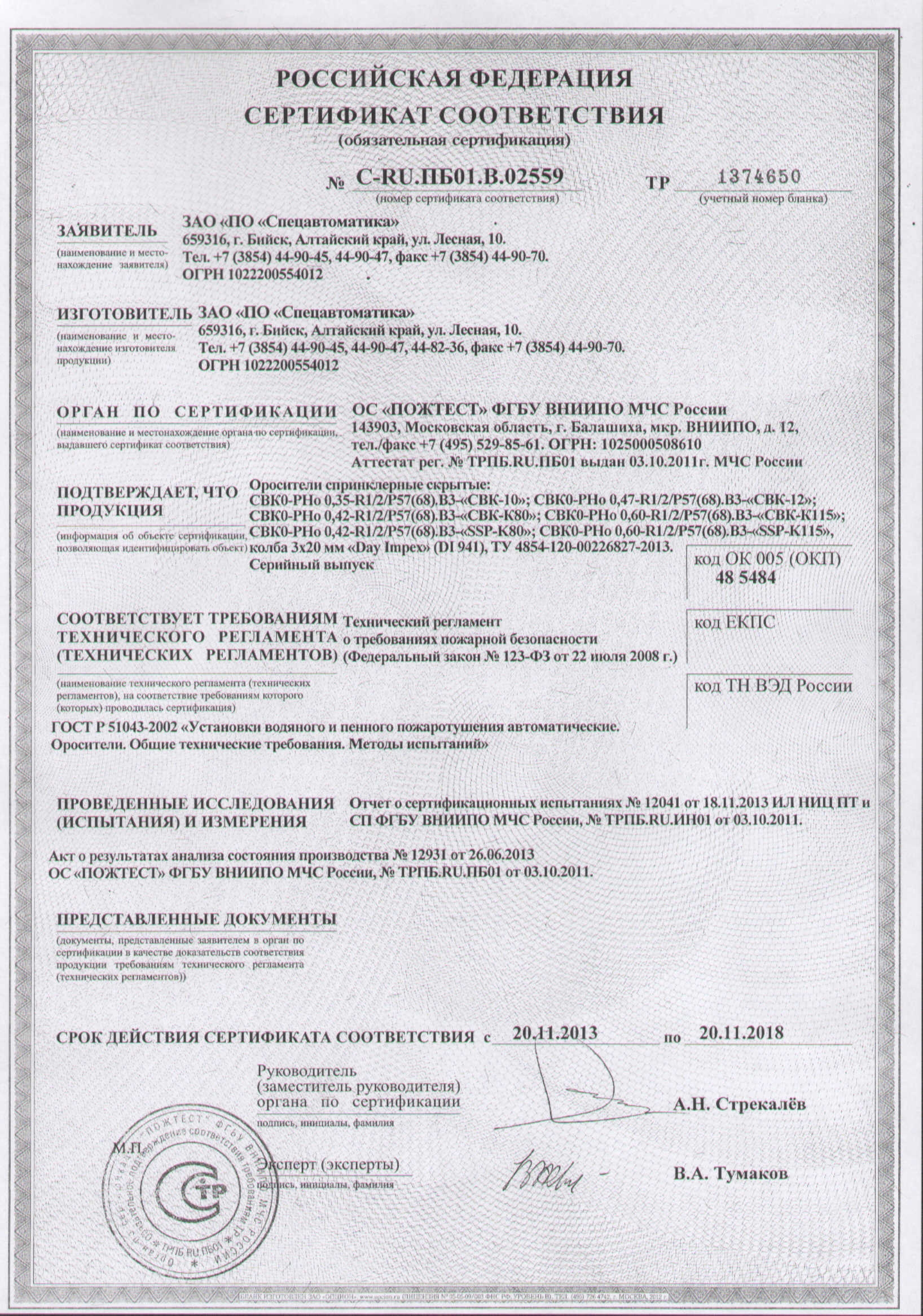 Ороситель спринклерный водяной/пенный предназначен для разбрызгивания воды/отв и распределения ее по защищаемой площади с целью тушения очагов пожара или их локализации, а также для создания водяных завес в автоматических установках пожаротушения.