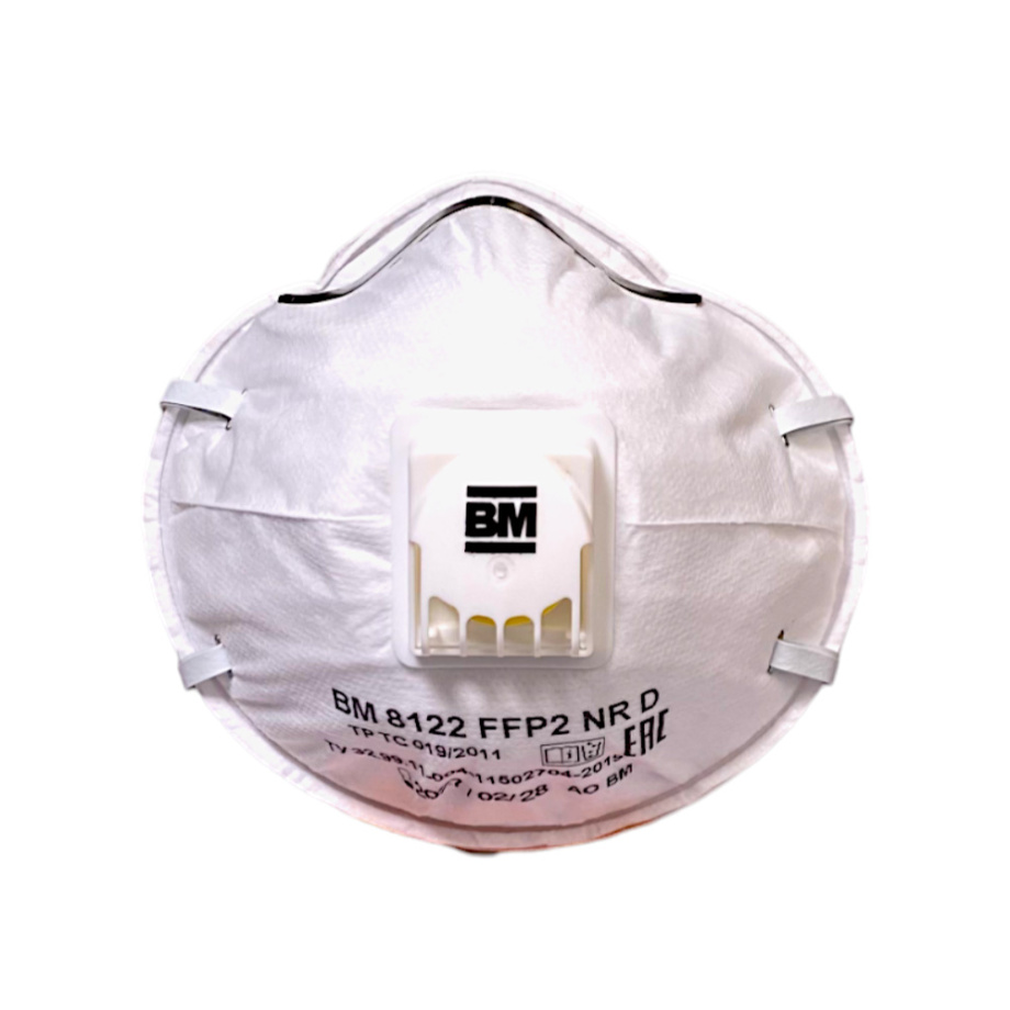 Респиратор ВМ 8122 FFP2 NR D с клапаном выдоха - полумаски формованные фильтрующие предназначены для защиты от вредных трудноиспаряемых аэрозолей (пыль, дым, туман) при их концентрации до 12 ПДК.