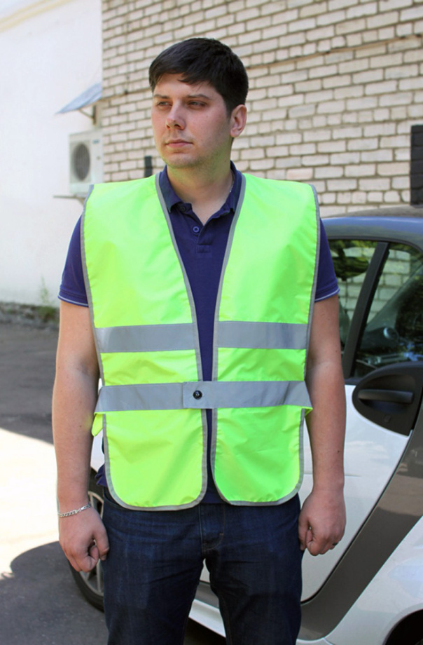 Жилет сигнальный выполнен из качественной ткани (полиэфир) и световозвращающих элементов. Изделие отличается яркой расцветкой и высоким коэффициентом световозвращения, что помогает увидеть носителя жилета в дневное время, и в ночное - при попадании света от любого источника на полосы-отражатели. Отличается высокой износостойкостью и выдерживает не менее 25 стирок при температуре 40º.
