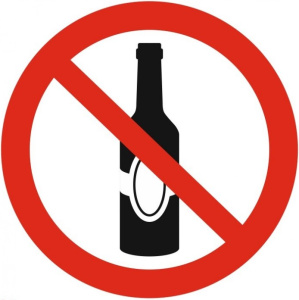 Самоклеящаяся наклейка P53 "Употребление алкогольных напитков запрещено" используется на производствах, складах и иных местах, где запрещено принимать алкогольные напитки, совместно с другими знаками пожарной безопасности.