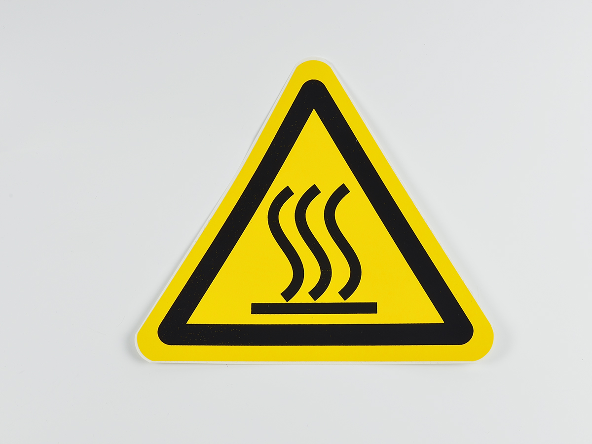 Самоклеящаяся наклейка W26 "Осторожно. Горячая поверхность" используется на рабочих местах, оборудовании или отдельных узлах оборудования с автоматическим включением (используется совместно с другими знаками пожарной безопасности).