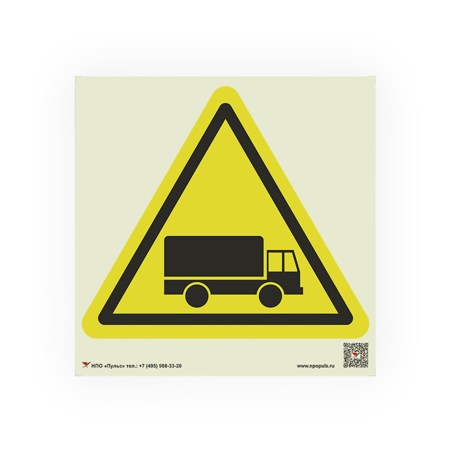Знак W35 Берегись автомобиля на самоклеящейся фотолюминесцентной плёнке, 200х200 НПО ПУЛЬС
