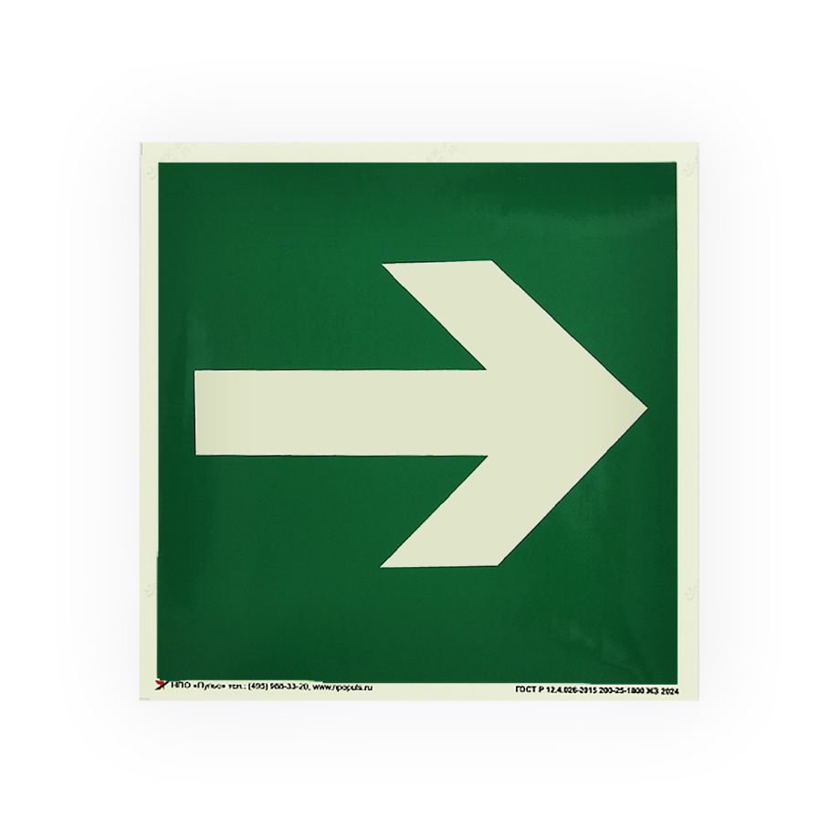 Знак E02-01 Направляющая стрелка на самоклеящейся фотолюминесцентной плёнке,150х150